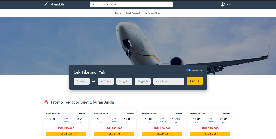 Platform pemesanan tiket maskapai penerbangan berbasis web dengan sistem reservasi online.